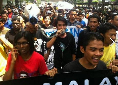 KUALA LUMPUR, 14 April: Ribuan mahasiswa berhimpun di hadapan kompleks membelibelah Sogo bagi menuntut dimansuhkan PTPTN dan percumakan pendidikan.